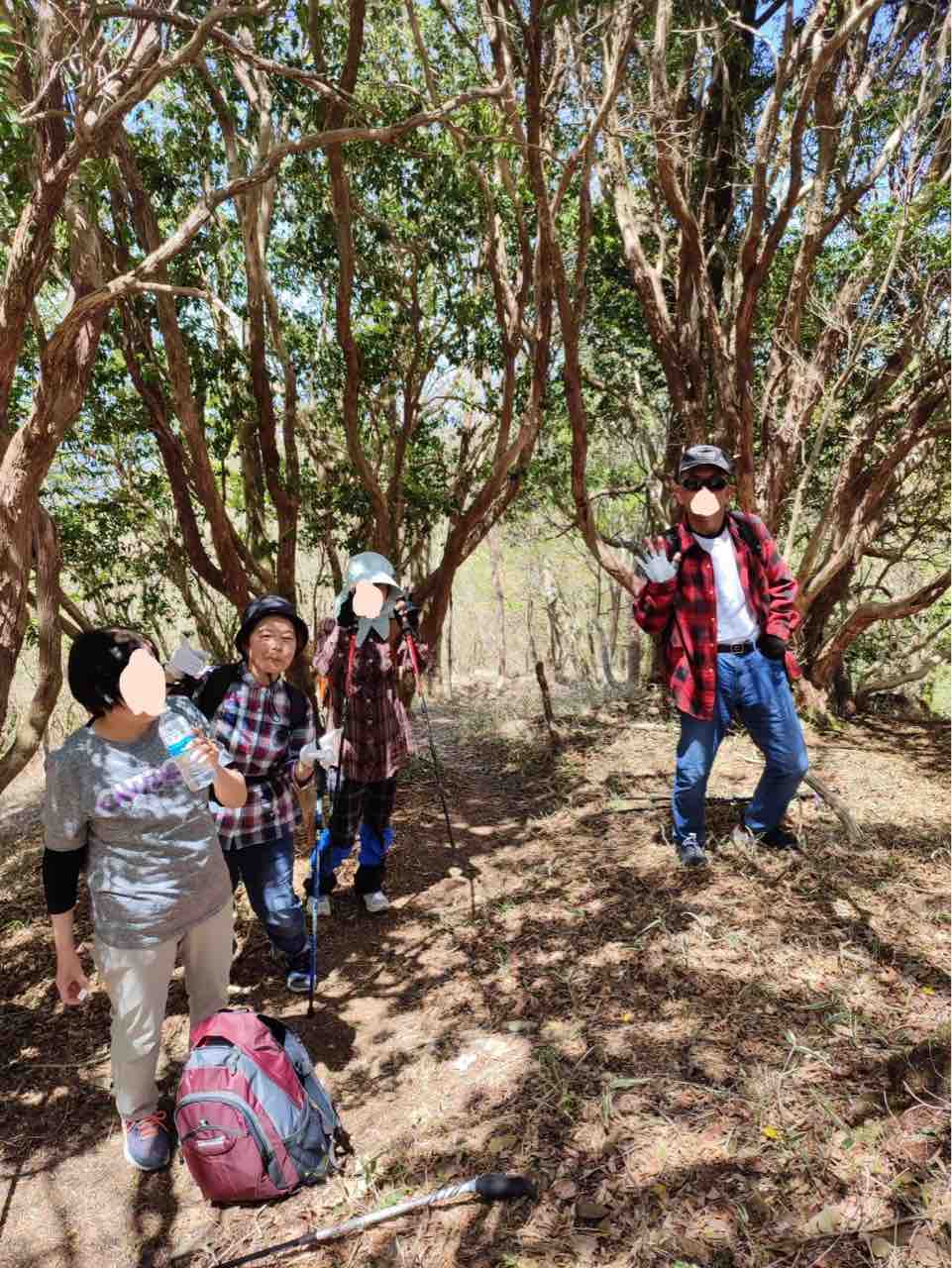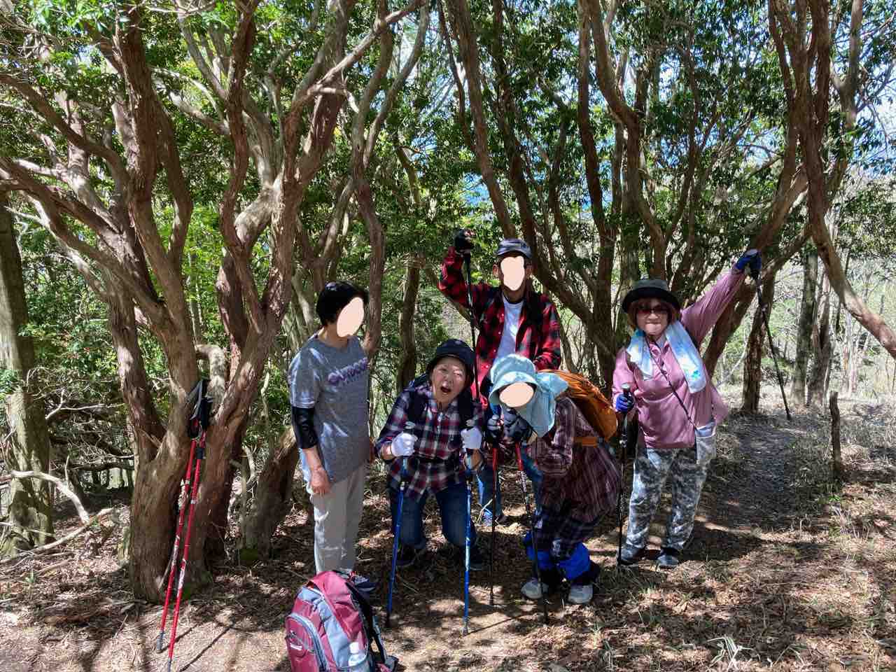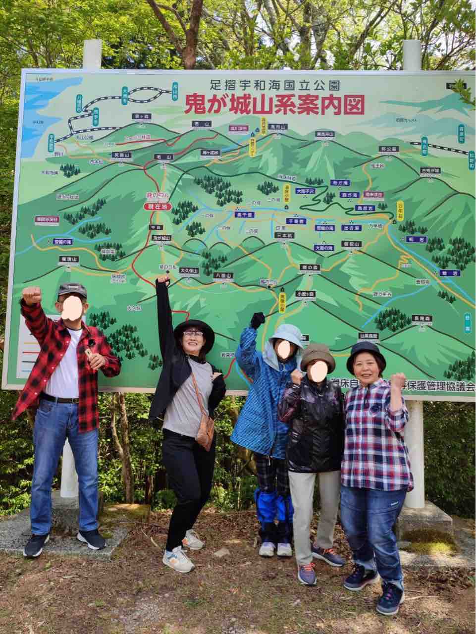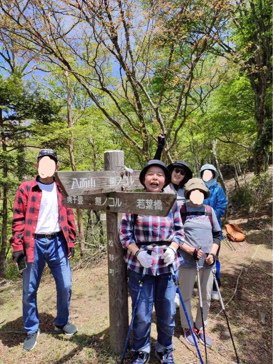 April 29, 2023 登山のお話 コメント数:0 コメント カテゴリ:レクリエーション by エステル 出発前の記念撮影です。皆元気いっぱい。KGが撮影したので本人が当然のことながら写っていません。で自分も一緒に写っているように合成してくれ というのでしました。KGとぴろちゃん以外は許可をもらっていませんので塗りつぶしです。山は本当に美しくて心洗われます。今日の楽しい気持ちそりゃ楽しい