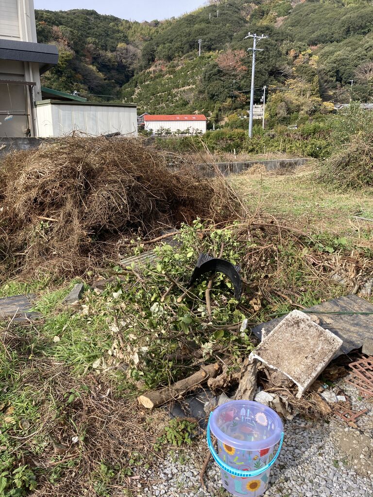 いらない草を一箇所に集めたら山になりました。